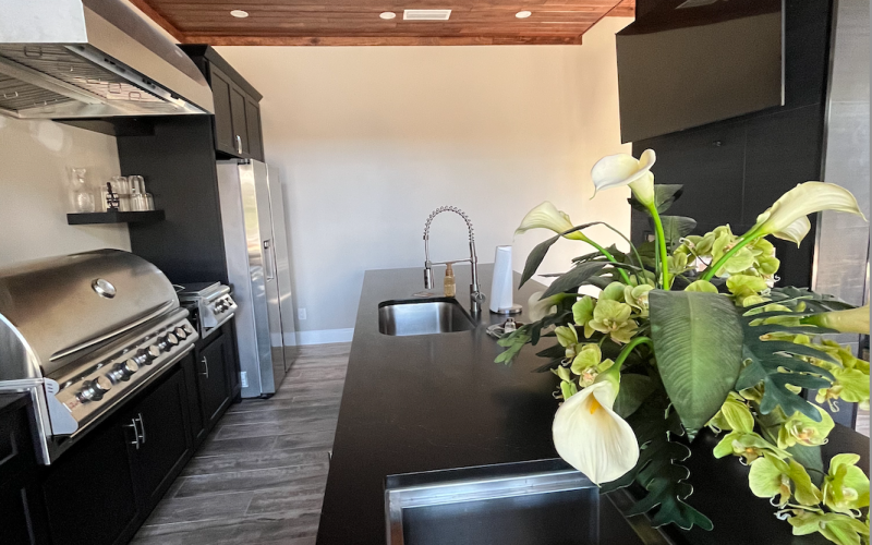 No luxury cabana would be complete without a kitchen fit for a chef. We designed a fully equipped outdoor kitchen with premium appliances, ample counter space, and storage that makes entertaining effortless. Whether hosting an intimate dinner or a large celebration, this kitchen delivers.